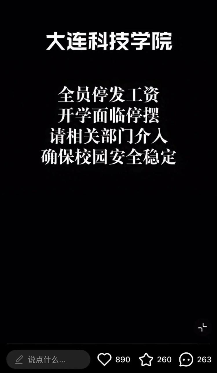 最近,一些网民发布说:“达利安科学技术大学的所有员工都停止了工资,而学校一开始就面临停职”,这引起了人们的关注。在“邮政评论”部分中,记者注意到了“达利安科学技术工会大学工会委员会”签署的“给所有教师和员工的信”。这封信指出,如果没有收到任何法律文件和通知,所有类型的相关学校帐户就冻结了大扬中级人民法院,导致7月的薪水未缴纳。学校工会将向所有教师和教职员工暂时提供贫困和慰问补贴。网民已经发布了达利安科学技术大学的所有员工都停止了支付工资。在评论区域中的学校内部信件。 8月23日,记者称达利安科学技术大学以证明这一问题为父母。学校办公室工作人员确认,在线转移的“给所有教师和工作人员的信”的内容是真的,但说:“学校现在正在解决这个问题。政府无法阻止学校运作。我们所有的老师都会很快工作。”在同一天,记者致电主管学校部门的贷款省教育部,但没有人接电话。记者指出,“给所有教师和员工的信”的签名日期是8月5日。根据Tianyan的支票信息,大扬科学技术大学有两份有关该人的实施人员的信息,总价值超过2.3亿元。有35份信息向受到实施的人提供,总价值超过35亿元人民币。其中,8月4日增加了实施信息的新延续,目标实施超过1.3亿元。实施COURT是达利安中级人民法院。公共信息表明,达利安科学技术大学位于借用省达利安市的Lushun经济发展区。这是一所私立科学大学和工程学。该学院成立于2002年7月。这是达利安·乔孔大学(Dalian Jiotong University)的前信息工程学院。这是一所独立学院,由达利安铁路学院(Dalian Railway College)和达利安(Dalian Sunshine)世纪教育行业投资有限公司(Dalian Century Investment Co,Ltd)共同组织(从那里开始为“达利安阳光世纪的教育”)。 2011年,该学校与达利安科学技术大学的本科生有关。根据达利安科学技术大学的官方网站,“我收到的录取通知要求将在10天内支付学费。”学校的一位新生告诉记者,他在8月初支付了所有学费。达利安大学科学技术的宣布表明,本科生的基础学校学费为每年28,000元人民币26,000元,而初级学院的费用为每年18,000元。 8月17日,微信官员于2025年发行了达利安科学技术大学的达利安科学技术大学,并在全国22个省份接纳了2,900多名本科新生。该学校目前有大约12,000名学生。为什么宇宙欠了很多钱?记者发现,达利安科学技术大学背后的公司达利安·阳光世纪教育(Dalian Sunshine Century Education)也参与了西装,而学校的副主席兼执行副校长高霍恩(Gao Xiaohan)是达利安科学与技术大学的法律代表,也是达利安阳光阳光的教育的法律代表。目前,Gao Xiaohan共有22个高消费限制的记录,大多数情况是Con集中于金融合同纠纷,还表示,所有学校雇员都被停职,并没有引起过度讨论,但是该学校最近一直在隐藏对宿舍建筑进行翻新的宿舍大楼,并未导致宿舍的招聘人员在整个生命中晋升了几次。过去,学校还发布了2025年招聘计划,招募了42位全职教师,专业领导者,顾问等。来源:DUTE News
